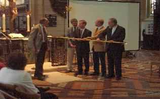 Nach einer Abendmahlsfeier wurde Diakon Martin Wolf als „neuer Hirte“ für die Hauskreisarbeit vorgestellt und zusammen mit Pfarrer Gerrit-Willem Oberman und Pfarrer Johannes Eißler, dich sich ebenfalls in die Hauskreisarbeit einbringen werden, für ihren Dienst beauftragt und eingesegnet.